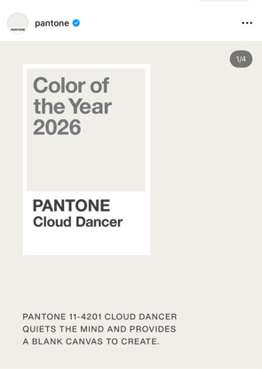 PANTONE社によると、“Cloud Dancer” は静かな心で、空白のキャンバスを作成する色。