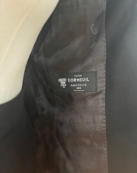 DORMEIUL Amadeus 365の3つボタンのシングルブラックスーツです。