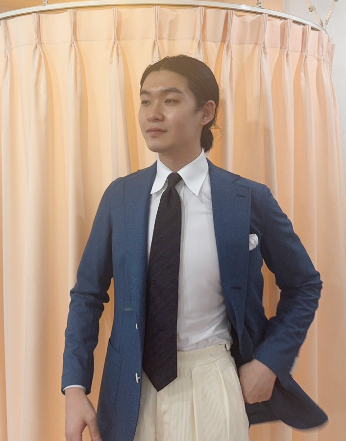それは何故か?!その理由は、、、なんと言っても、仕立てるアイテムの幅も広いことに加えて、《カジュアル》からフォーマルまでこなしてしまう懐の深さ、とでも言いましょうか。