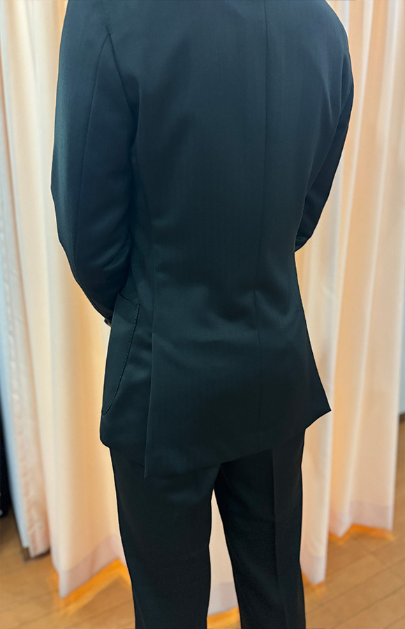 一般的にスーツの着丈の基本は、「ヒップが隠れる長さ」です。