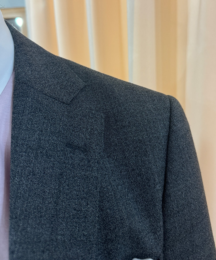 パットを抜きナチュラルな肩周りにすることで、肩が軽くなることはもちろん、肩周りの可動域も広がり、スーツの固い印象からソフトで柔らかい印象に変化させることが出来ます。