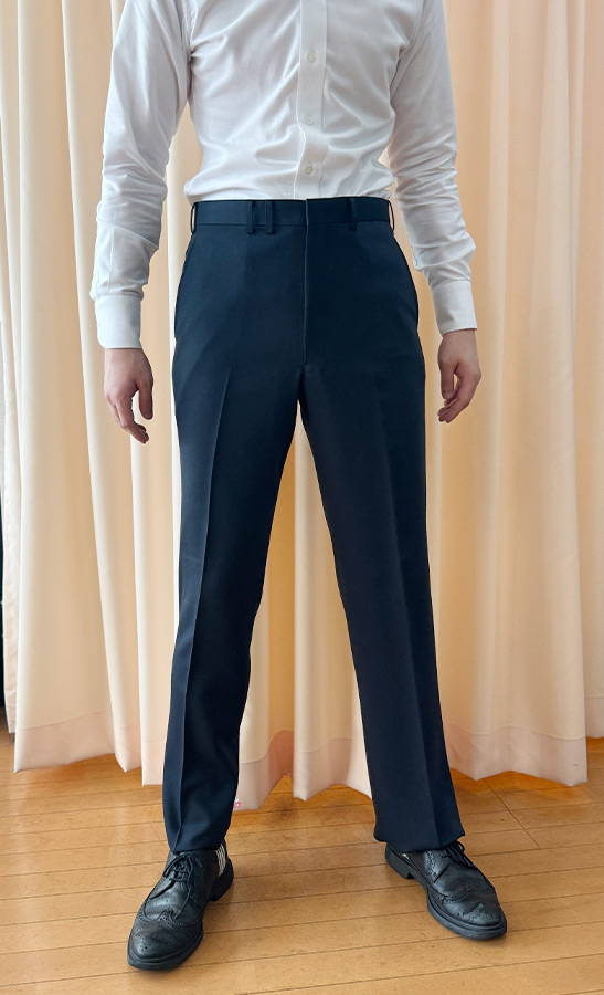 ジャケットやインナー(ポロ・Yシャツ)が良くても、スラックスが身体に合っていなければ全体的にだらしなく映ってしまいます。