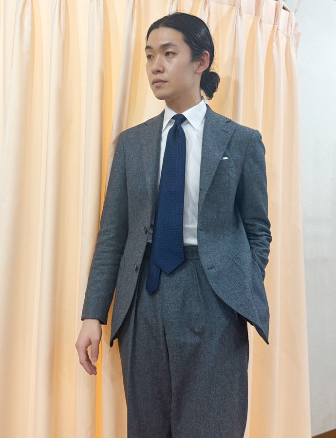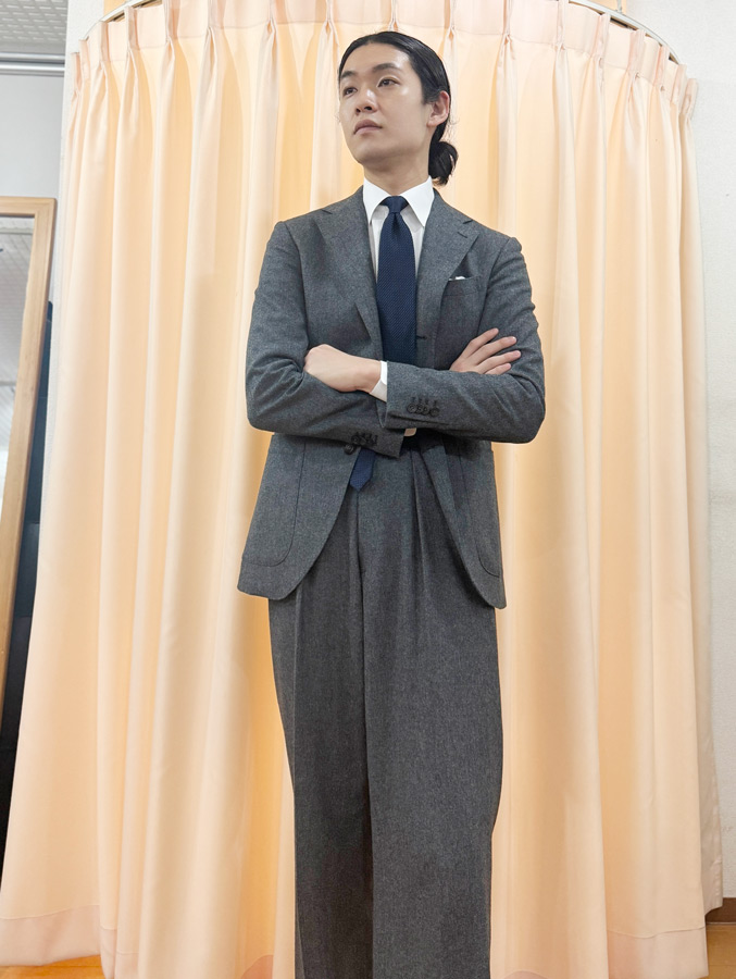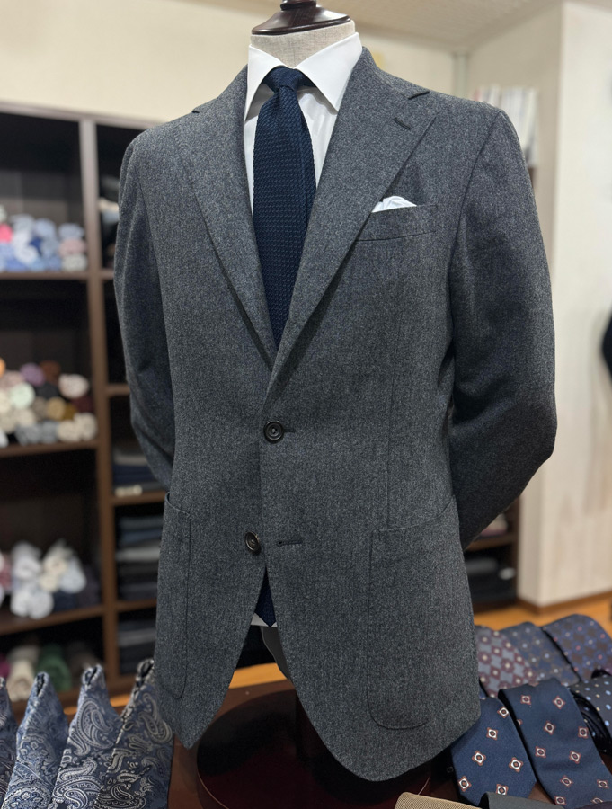 フランネルスーツを持っておけば、ビジネス~カジュアルまで色々な着こなしを楽しんでいただけますので、是非この冬、コンフォート仕立てで1着仕立ててみてください!