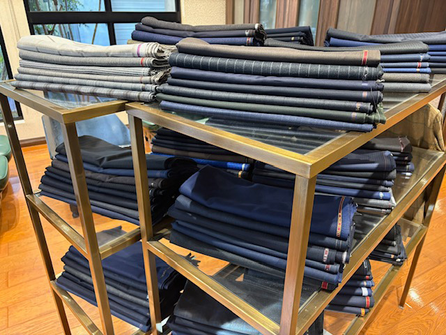 基本的に店頭にご用意している分のみの在庫となっておりますので、ご体型や生地の用尺によってはスーツ上下、ベスト等お受けできない場合もございます。