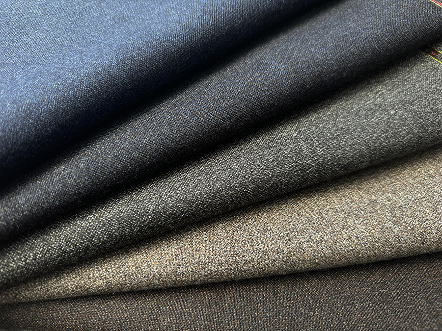 綾織りやサージなど厚みと滑らかさのある組織で、保温性と高級感も兼ね備えております。