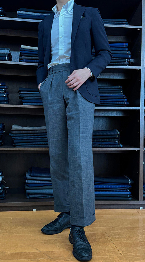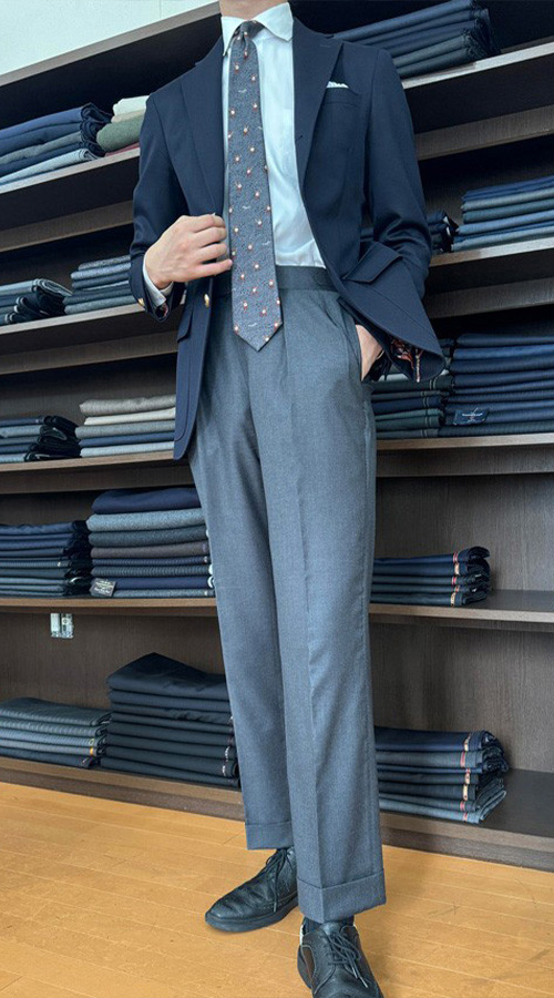 ジャケットの定番が「紺」なら、スラックスの定番は『グレー』。