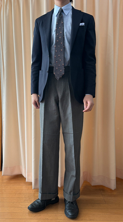 ですから、これからジャケパンスタイルに挑戦される方は、まずは定番の紺ジャケット1着、そしてスラックスを数本。