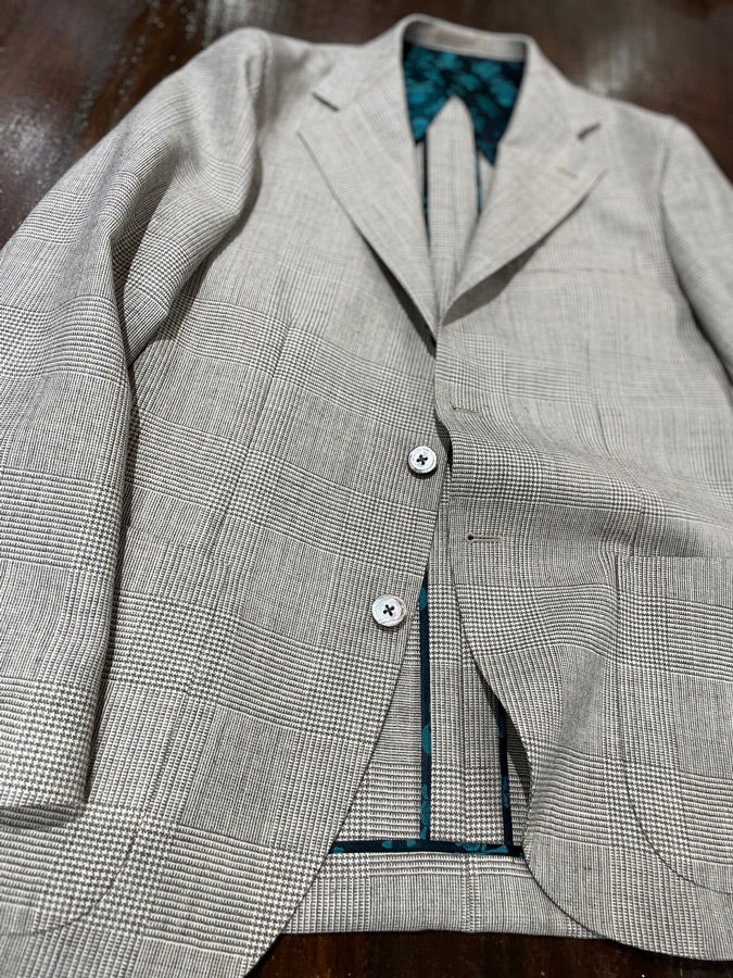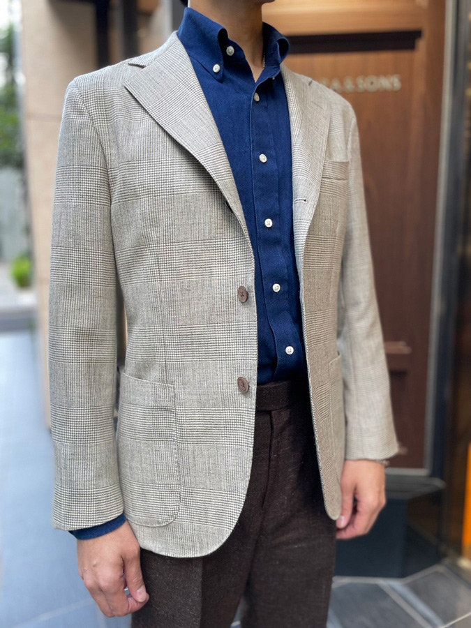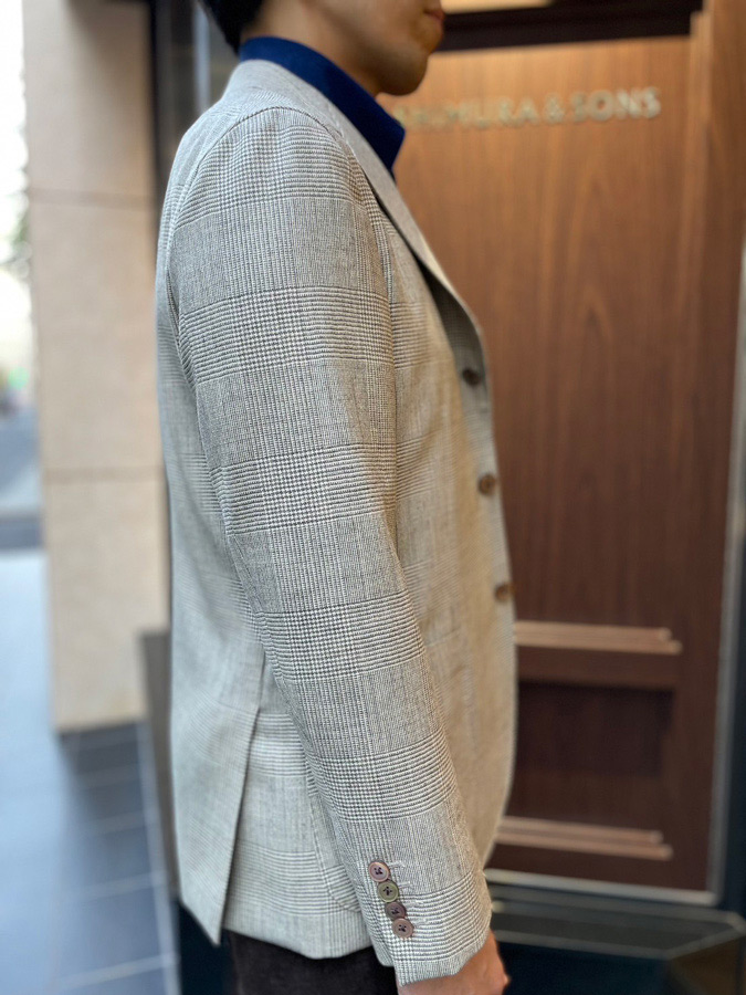 この生地感であれば、THE英国式で仕立てるのがセオリーですが、これを敢えて軽量仕立てで楽しむのは非常に粋かなと。