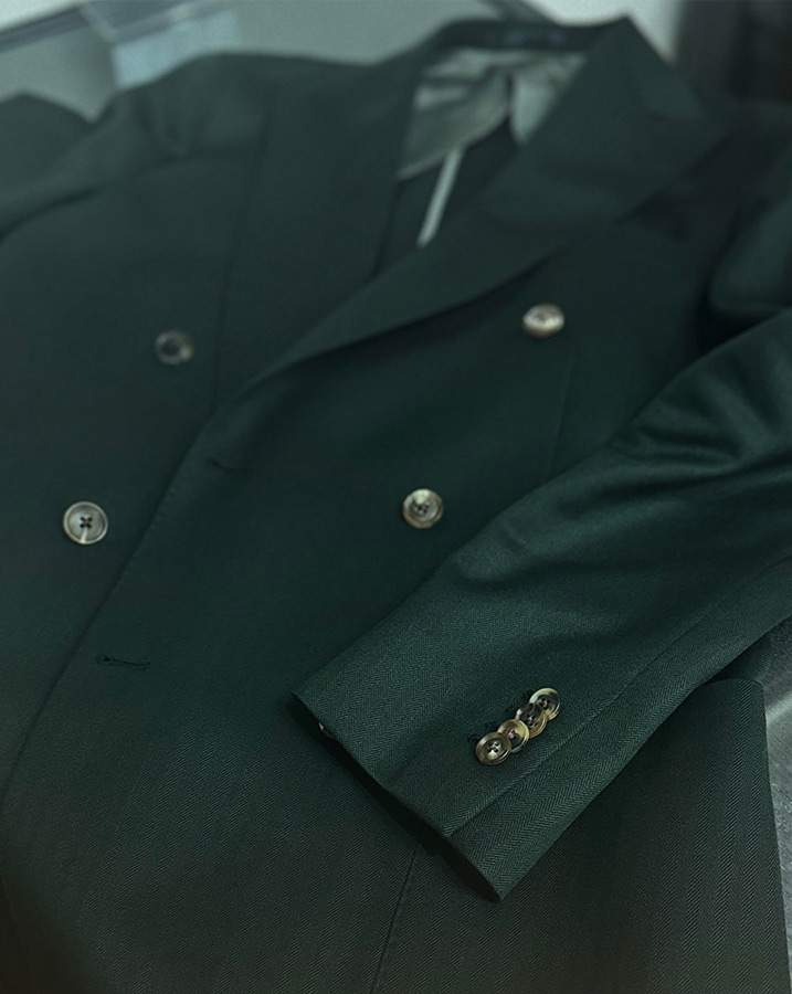 かなり重厚感のある英国的な生地ですので、ブリティッシュな仕立ても良いんですが・・・