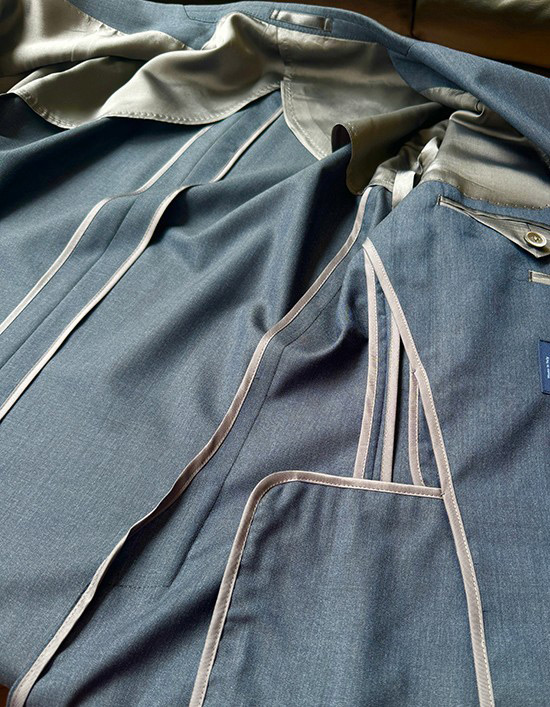 全体的に柔らかい印象になりますが、全く芯地が入らないコンフィージャケットと違いコンフォートジャケットには薄い芯地が入ります。