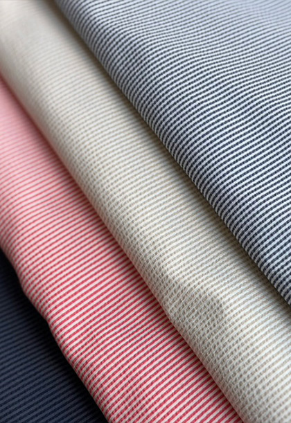 綿100%の着心地の良さ&ストライプや大胆なチェック柄等デザインの豊富さが人気の国産生地。
