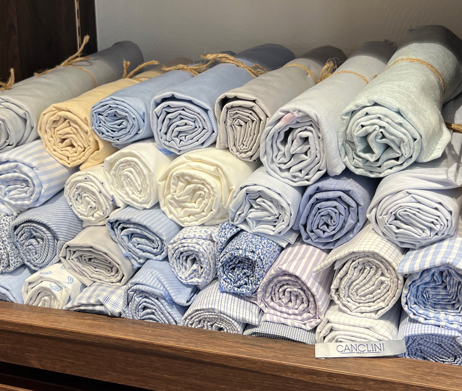 中でも定番の〈ブロード〉や〈ツイル〉、〈ヘリンボーン〉は一級品で、一目見て分かるその高級感はカンクリーニでしか味わうことが出来ません。