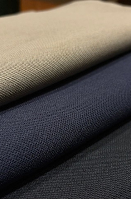 イタリアライクな風合いに、しっかりとしたハリ・コシも兼ね備えたどこか英国の雰囲気を感じられるが魅力のファブリックです。