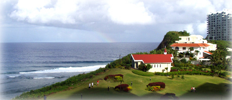 画像はホテルからの眺めですが丁度、虹が遠洋に掛かっており、幸先の良いスタートです。 何か良いことあればよいのですが・・・ 初日は余り自由時間がなかったので取り敢えずは免税店をブラブラして早めに就寝いたしました。 2日目は、終日自由行動だったので何処へ行こうかみんなで話しておりましたが大体4グループぐらいに分かれました。 街に繰り出すグループ、海へ行くグループ、単独行動する人、半島ドライブに行くグループです。 私は勿論、海へ!と行きたいところでしたが、半島ドライブグループに参加しました。 海へ繰り出すグループは誰なのかと観察してみると、東京・大阪スタッフのベテランばかりではないですか。 東京では、大橋さん、司茂さん、閏間さん、三谷さん、松下さん。 大阪では経理の宮本さん、クロスランドの大阪担当吉岡さん、平均年齢40歳の大先輩達でした。 何でもパラセイリングや海上スキー等々海のレジャーを相当満喫する予定らしいです。 恐るべし、ベテラン勢ですね。 その一方で半島ドライブ衆はと言うと、大阪一野さん、山橋さん、橋本さん、東京は中尾さんと北の社内の中での若者と大御所達のグループです。 大御所が海に行かない理由は察しがつきますが若者達は何故海へ行かないのでしょうか。 理由は簡単、日に焼けたくないからです。 グアムに行って海に行かないなんてと失笑が聞こえてきそうですが暑いのは我慢出来ない性分なので仕方ありません。 早速レンタカー店で車を借り、颯爽とドライブに出掛けましたがグアムはアメリカでしたので右車線を走行です。 ハンドルは右側でしたがワイパーやウィンカーが逆なので最初は慣れずドライバーの某氏は大変そうでした。 また、右折は信号関係なく左から来る車に注意しながら右折出来るなど意外と知らない海外の交通事情があり驚きました。 車で半島をぐるっと半分ぐらい周り、途中ココス島や横井庄一さんが残留日本人兵として数十年過ごした場所に立ち寄ったりしました。 ココス島と言えば子供時代の際にも来たことがあり、うっすらと当時の記憶が甦りました。 そんなココス島ですが島自体は私有地?らしく、正規の船を使用しないと行けないようで、そんなこととは露知らず。 やたら馴れ馴れしいアメリカ人のオヤジが話しかけてきて、その様子からどうも船頭のようだったので、渡し賃を負けさせて出航→上陸したのですが島に着くなり、ガードマンらしい人物にお金を払えと言われアメリカ人のオヤジに体よくダマされてしまったのかと思いました。 あ〜ぁと思ったのですがお金=上陸賃?入場料?を島に入ったら払うのらしいのですがそれを払えとのことでした。 その入場料と船賃、正規の船賃と入場料を計算すると先に船賃を負けたさせた結果、損することもなく、スリルだけを味わって上陸、そして無事何事もなくホテルに帰ることが出来ました。 上手いこと商売している人が何処でも入るものですね。 最終日は、フライトまで時間があったので朝一で実弾射撃へ行くことにしました。 そこはグアムでも有名らしく、ダウンタウンの浜ちゃんの写真も飾っておりました。 実弾なんて、撃ったことありませんでしたので(当然ですが)なんとも言えない気持ちで身構えておりました。