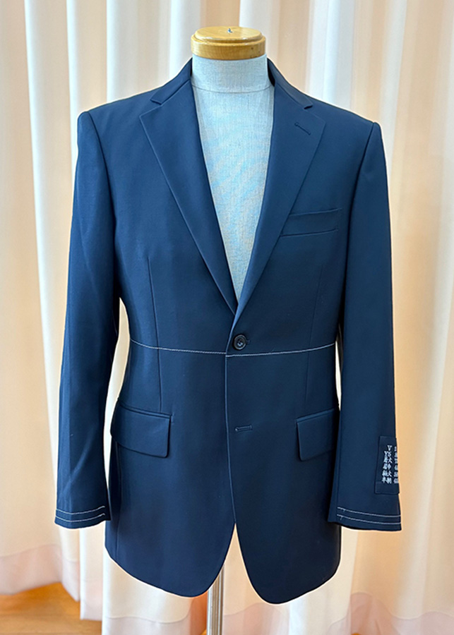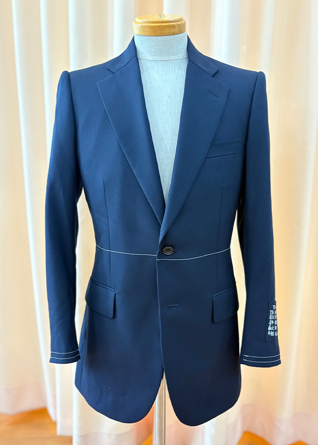 基本はジャケットもスラックスもメンズパターンを使用しましたが、レディースの仕様を残したところもあります。