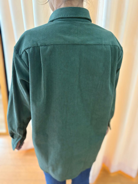 深みのあるグリーンの機能性素材のコーデュロイ(ポリエステル100%)で、シャツをオーダーいただきました。 お気に入りの形のシャツをお持ち込みいただき、可能な限り、サイズ、デザインを踏襲させていただきました。 このシャツの最大のポイントは、“カジュアルウェアとしての自由度”と “オーダーならではの精密さ”の両立です。