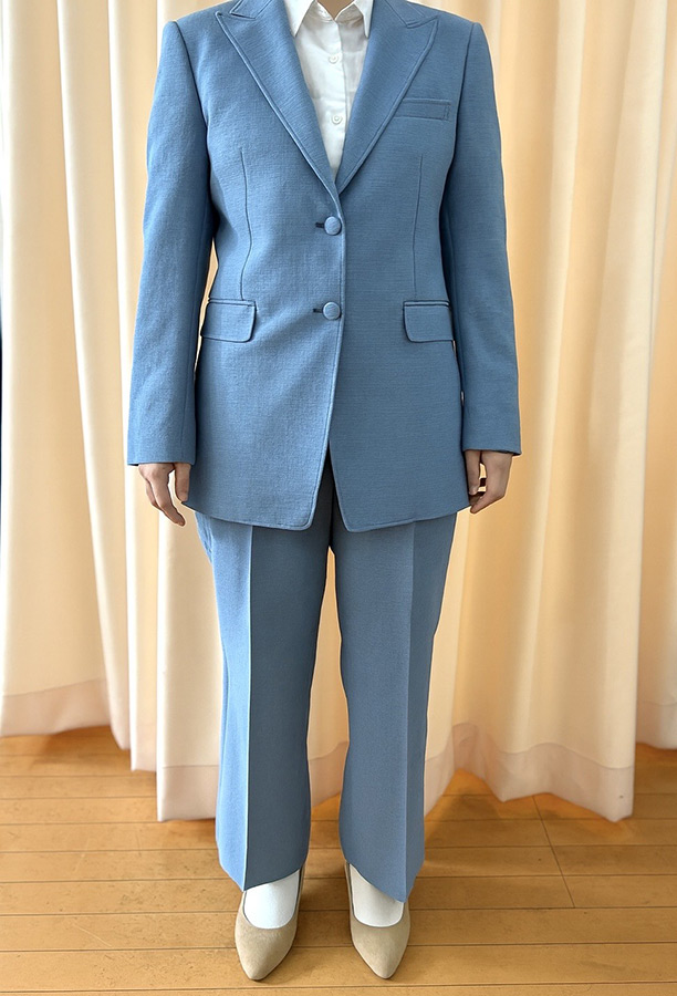このように、色やデザインだけでなく、用途に合わせたサイズ感までもこだわれるところが、オーダーのよいところです。 機能性素材だからこそ実現できる、洗える・動ける・美しい、 この3拍子揃ったスーツは、お客様のパフォーマンスを支えてくれることと思います。