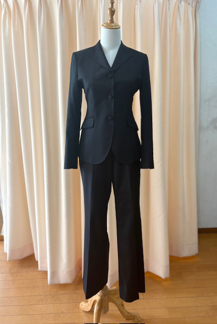 このスーツはシャツやブラウス、アクセサリーをまとわずに、スーツだけで完成するスタイルをイメージしてお仕立てしました。