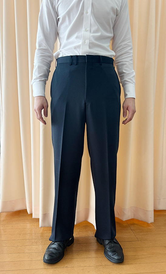このバランスが崩れてしまうことが、既製品スラックスを履いた時の違和感に繋がる理由であり、ちょっとした罠です。