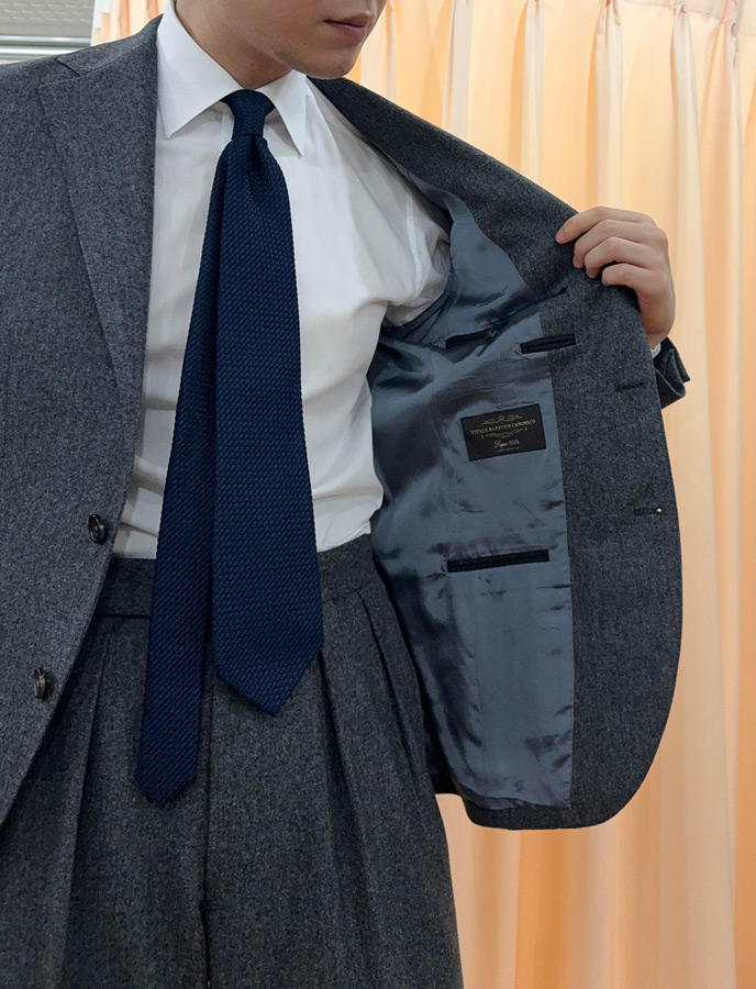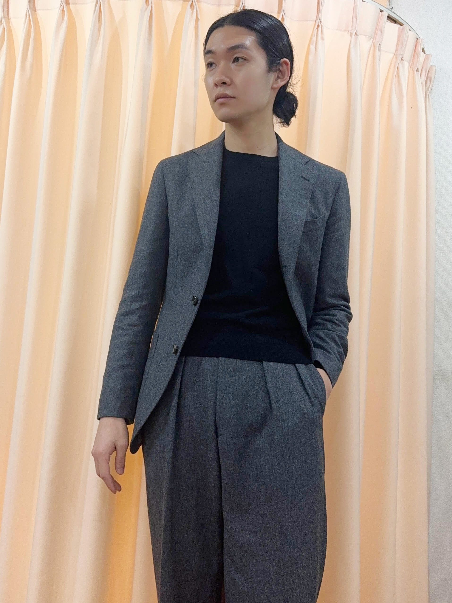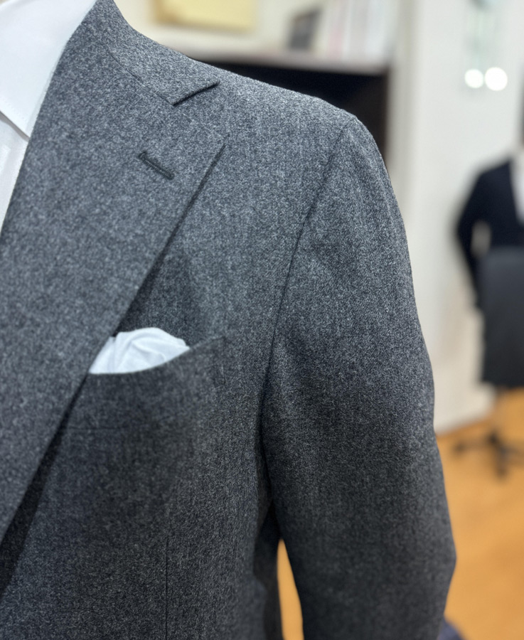 フランネルスーツを持っておけば、ビジネス~カジュアルまで色々な着こなしを楽しんでいただけますので、是非この冬、コンフォート仕立てで1着仕立ててみてください!