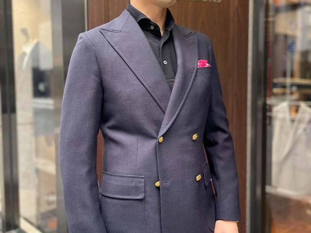 ダブルブレステッドで軽量仕立てを楽しめるもの、コンフォートジャケットならではの魅力ですので、是非お試しください!