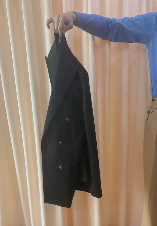 かなり重厚感のある英国的な生地ですので、ブリティッシュな仕立ても良いんですが・・・